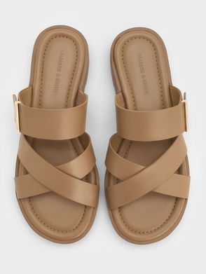Metallic-Accent Crossover-Strap Slide Sandals
