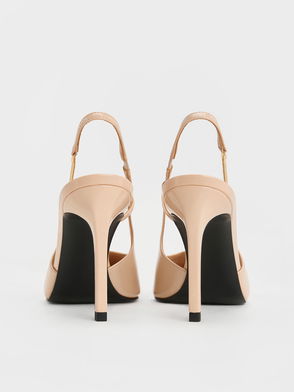 Wynn Patent Pointed-Toe Sculptural-Heel Slingback Pumps