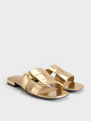 Petina Metallic Leather Slide Sandals