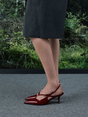 Patent Pointed-Toe Slingback Kitten Heels