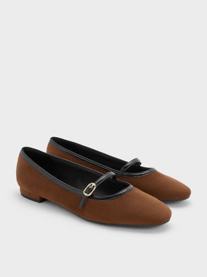 Faux Suede Contrast-Trim Buckle-Strap Mary Janes