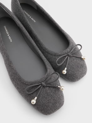 Barbara Felt Pearl-Embellished Bow Ballet Flats