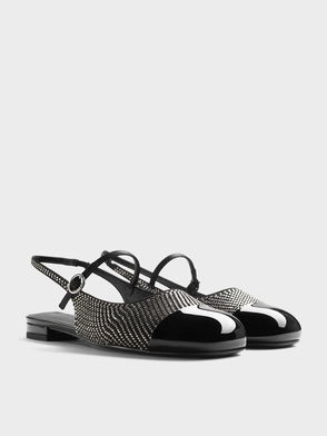 Pearl & Crystal-Embellished Cap-Toe Slingback Mary Jane Flats