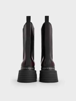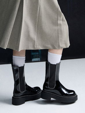 Stitch-Trim Platform Mid-Calf Chelsea Boots
