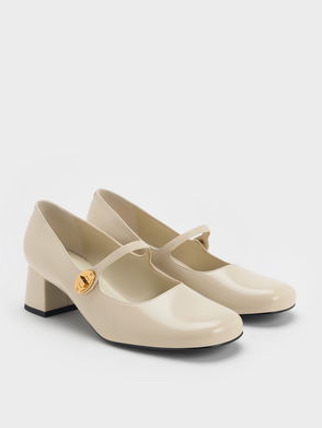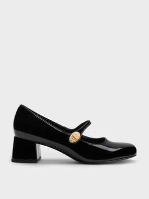 Hettie Patent Metallic-Buckle Block-Heel Mary Janes
