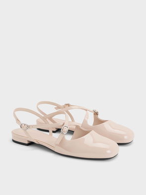 Patent Crystal-Buckle Block-Heel Slingback Pumps