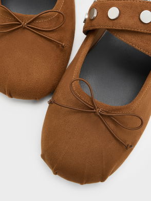 Gael Faux Suede Studded Crossover-Strap Bow Mary Janes