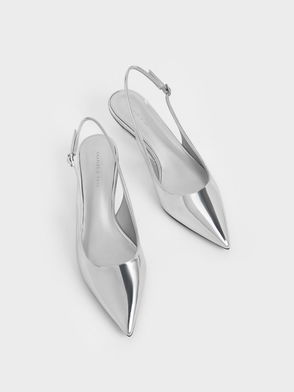 Curtis Metallic Pointed-Toe Kitten-Heel Slingback Pumps