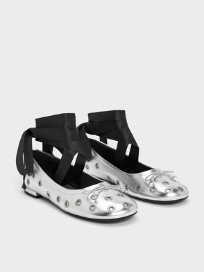 Margot Metallic Grommet Tie-Around Ballet Flats
