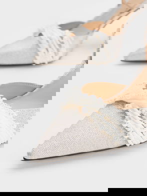 Recycled Polyester Beaded Bow Slingback Pumps