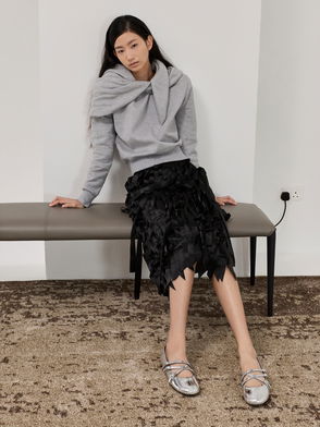 Mesh Gem-Embellished Ballet Flats