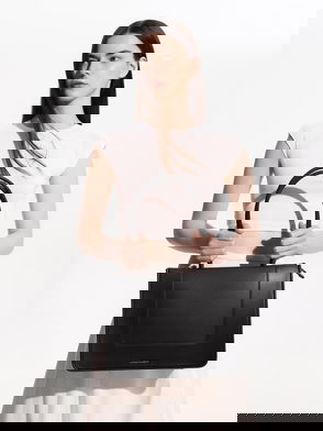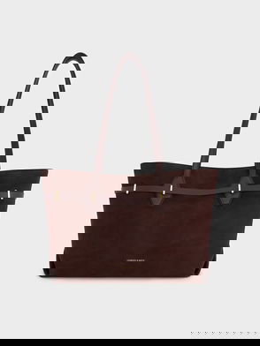 Arlet Recycled Suede Double-Handle Belted Tote Bag