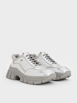 Yunna Metallic Leather & Recycled Fabric Chunky Sneakers