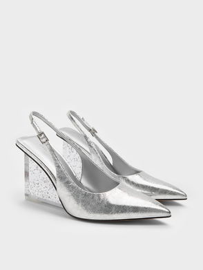 Patent Translucent-Heel Slingback Wedges