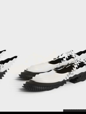 Patent Contrast-Trim Pointed-Toe Bow-Strap Flats