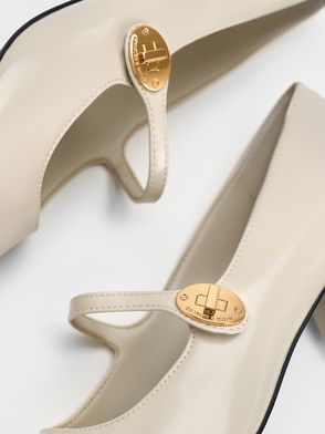 Hettie Patent Metallic-Buckle Block-Heel Mary Janes