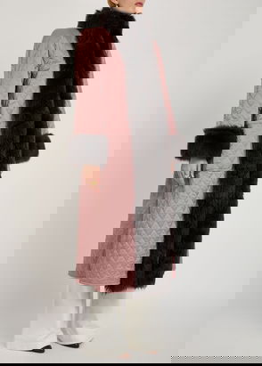 Quilted Shearling-trimmed Satin Coat