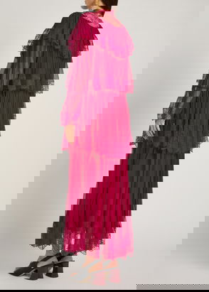 Ruffled Lace-trim Tiered Silk Maxi Dress