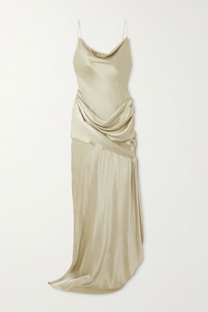 Verdant Falls Open-Back Draped Silk-Satin Maxi Dress