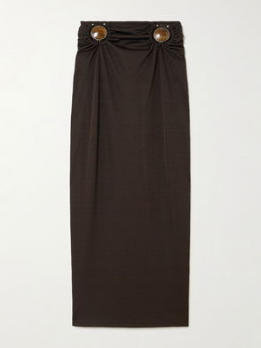 Moodstone Embellished Ruched Ribbed Stretch-Jersey Maxi Skirt