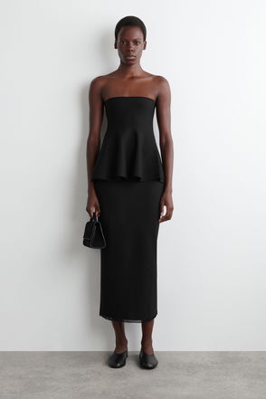 SHEER-DETAIL KNITTED PEPLUM TOP