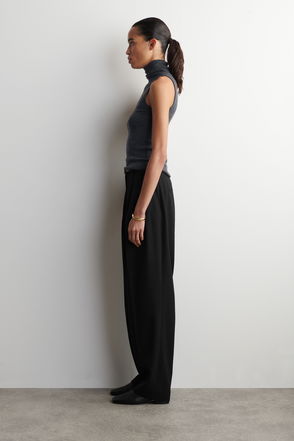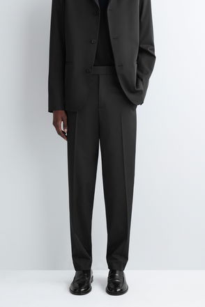 PLEATED WOOL-BLEND TAPERED TROUSERS