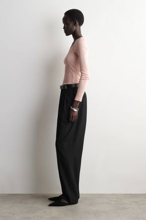 PINSTRIPED RELAXED-FIT WIDE-LEG TROUSERS