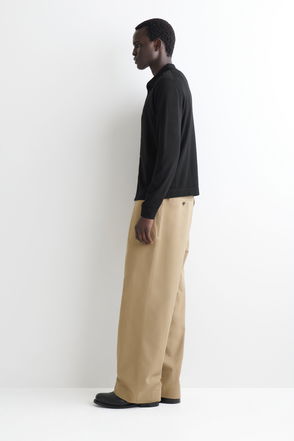 PLEATED BARREL-LEG WOOL TROUSERS