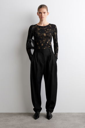PLEATED WOOL-BLEND TULIP TROUSERS