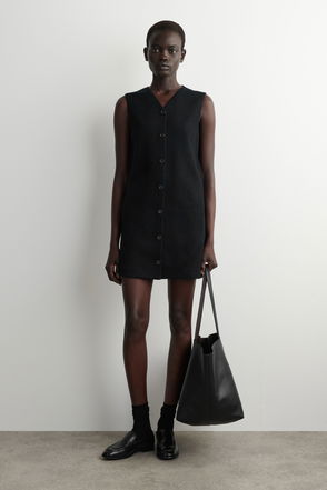 MERINO WOOL BUTTONED SHIFT MINI DRESS