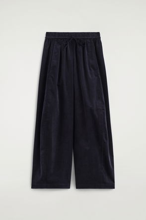 ELASTICATED CORDUROY BARREL-LEG TROUSERS