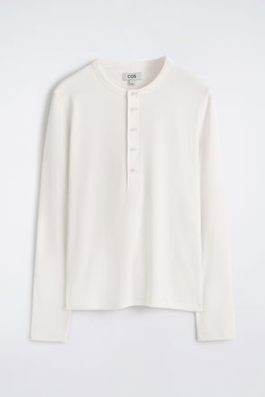 Slim Ribbed Cotton Long-Sleeved Henley T-Shirt