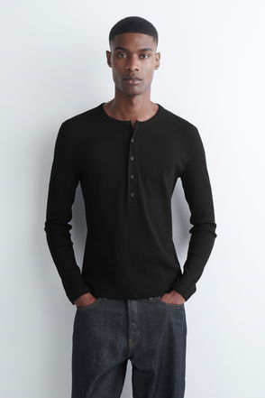 Slim-Fit Ribbed Henley T-Shirt