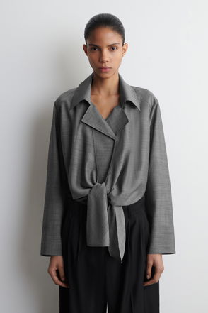TIE-FRONT WOOL-RAMIE SHIRT