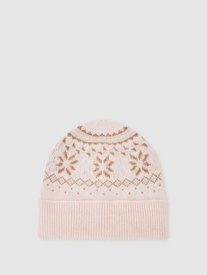 Junior Fair Isle Hat And Scarf Set With Wool In Ecru