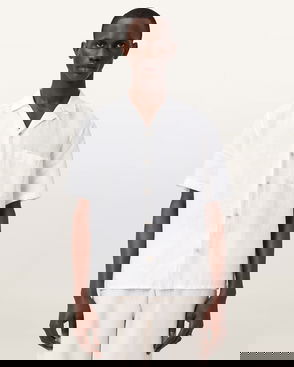 Linen Blend Regular Fit Short Sleeve Shirt, Ecru