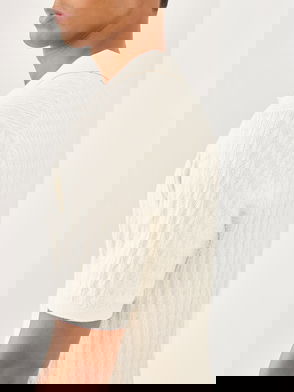 Abercrombie & Fitch Short Sleeve Knit Resort Button Through Polo In Cream