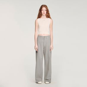 Petite Wide-Leg Seam-Detail Trousers In Cream