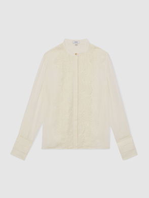 Lace-Trim Sheer Button-Through Blouse In Cream