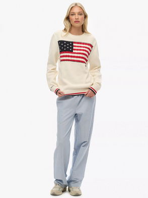 Athletic Essentials Americana Flag Crew Knit Jumper, Cream/Multi