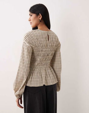 Charlize Shirred Peplum Top In Cream Check