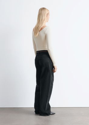 PLEATED WIDE-LEG DENIM TROUSERS