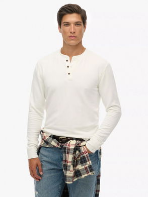 Cotton Blend With Wool Ribbed Half Button Jumper, Ecru