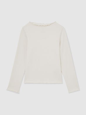 13-14 Yrs Stretch-Cotton Lettuce-Trim Ribbed Top In Ecru