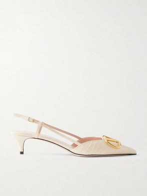 VLogo 40 Embellished Croc-effect Leather Slingback Pumps