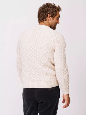 Cotton Chunky Knit Crew Neck Jumper In Natural