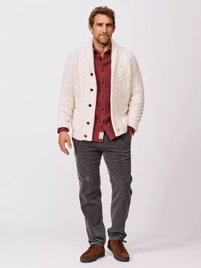 Cotton Blend With Wool Ribbed Half Button Jumper, Ecru