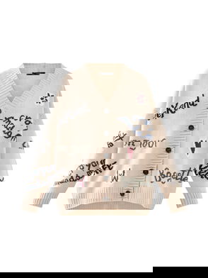 Super Soft Printed Henley Jumper In Cream Terry Print