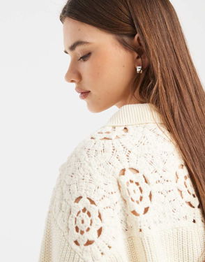 Crochet Polo Jumper In Ecru