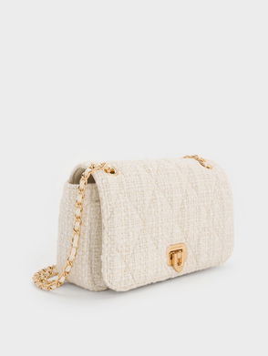 Arwen Tweed Diamond-Quilt Braided-Strap Shoulder Bag